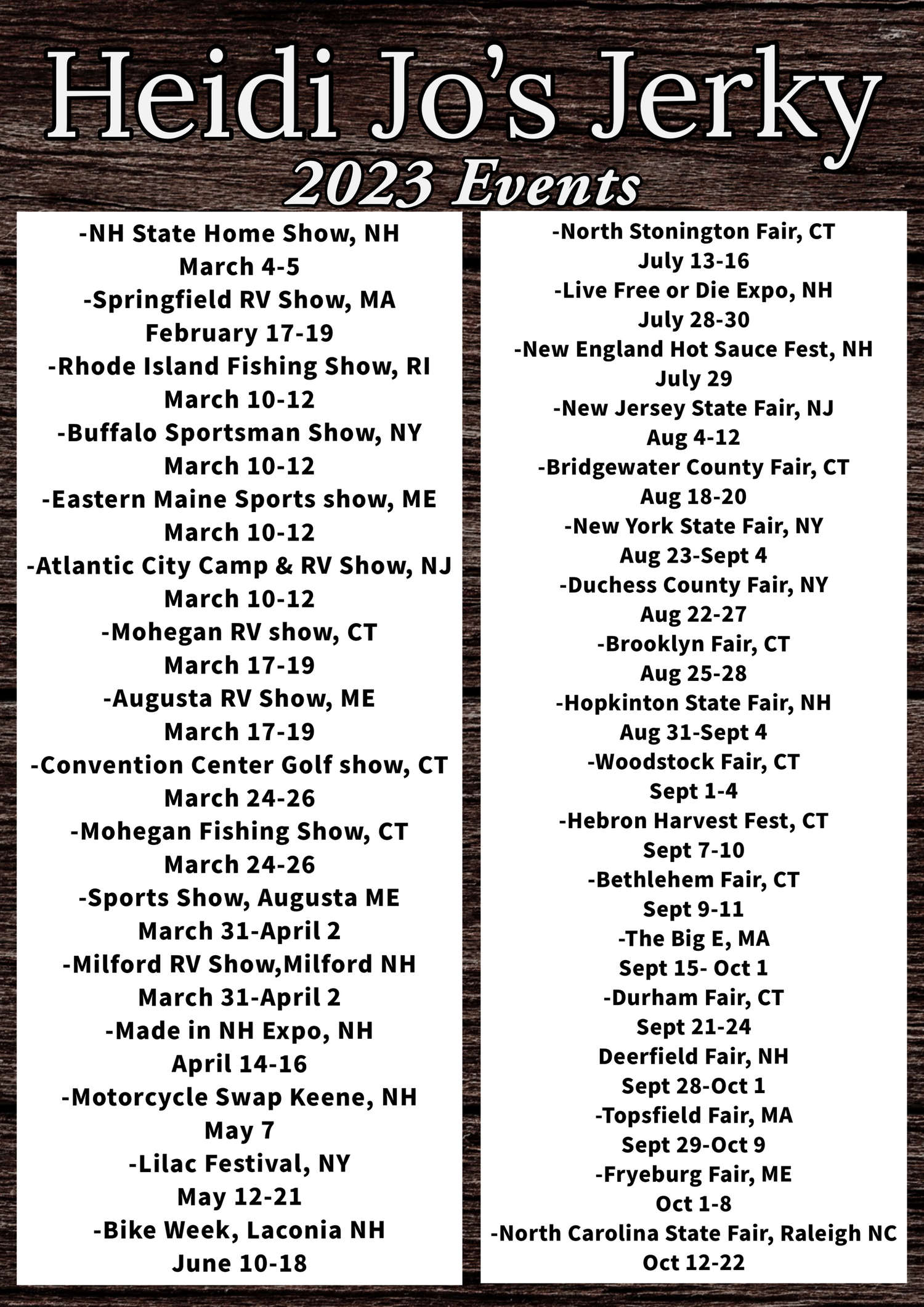 Source : www.facebook.com2023 Event List โ Heidi Jo’s Jerky